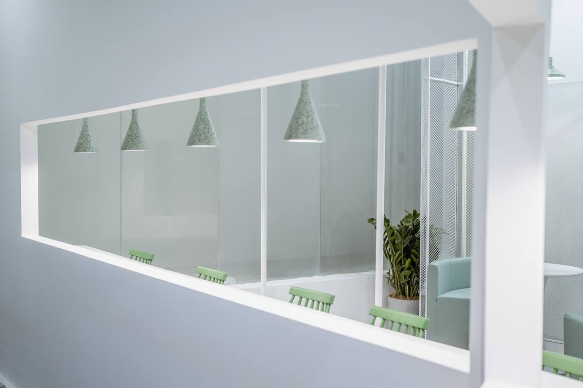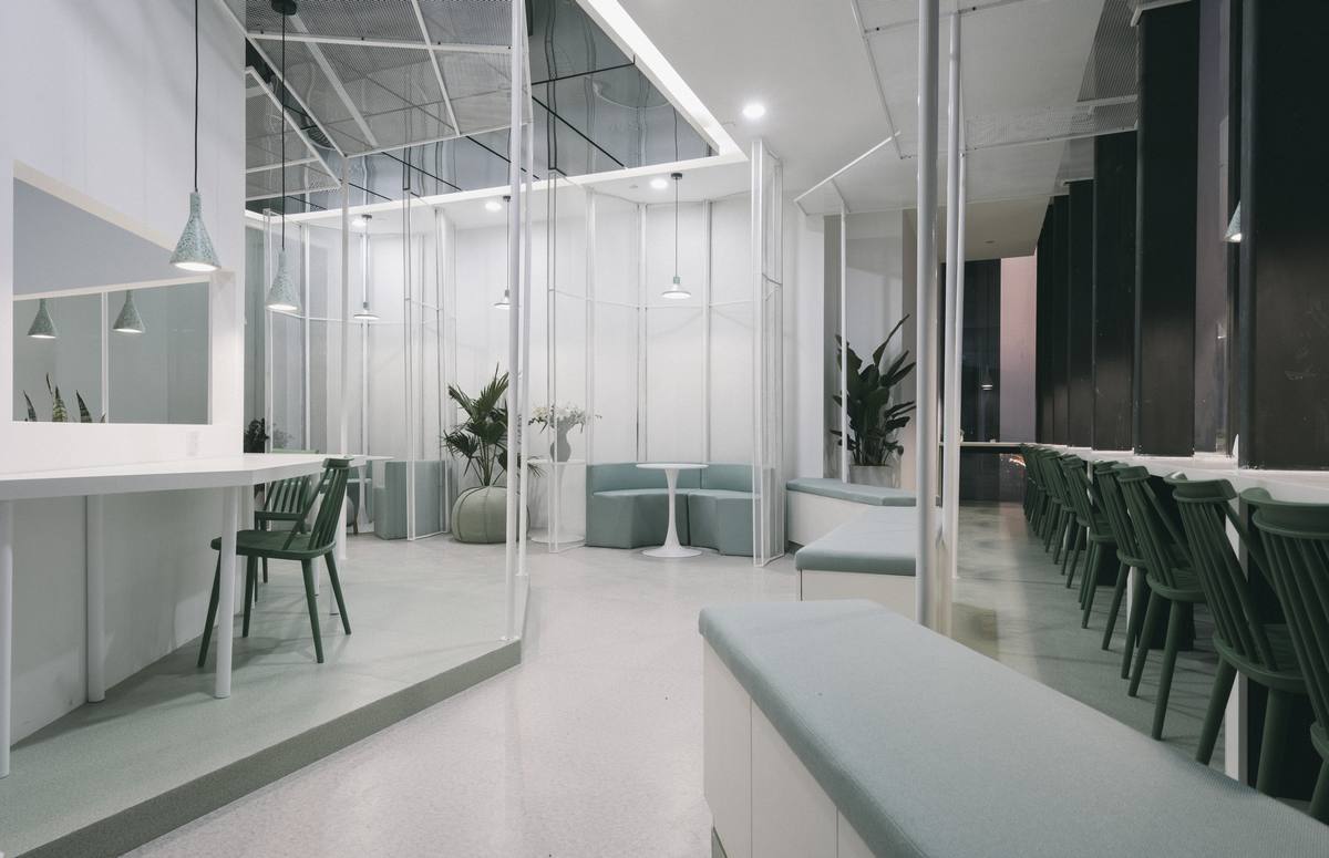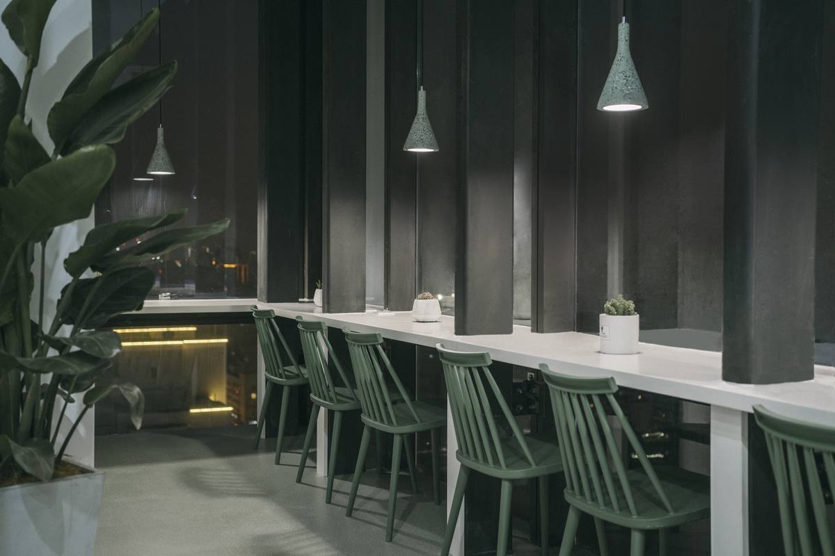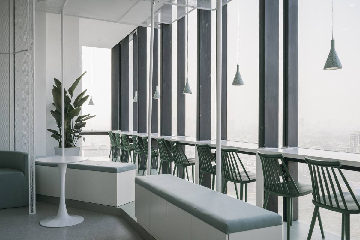 云廊”空中自习室选址在车水马龙的苏州古城区与吴中区的交界处,傍晚华灯初上的时候,柠黄色的灯光映照在高耸的写字楼间,绵绵绿意掩映婆裟的灯影,勾勒出一方悠闲、惬意的静谧空间。整个项目在视线可达的范围之中,对整个姑苏老城的历史风韵、传统文脉呈俯瞰之姿。